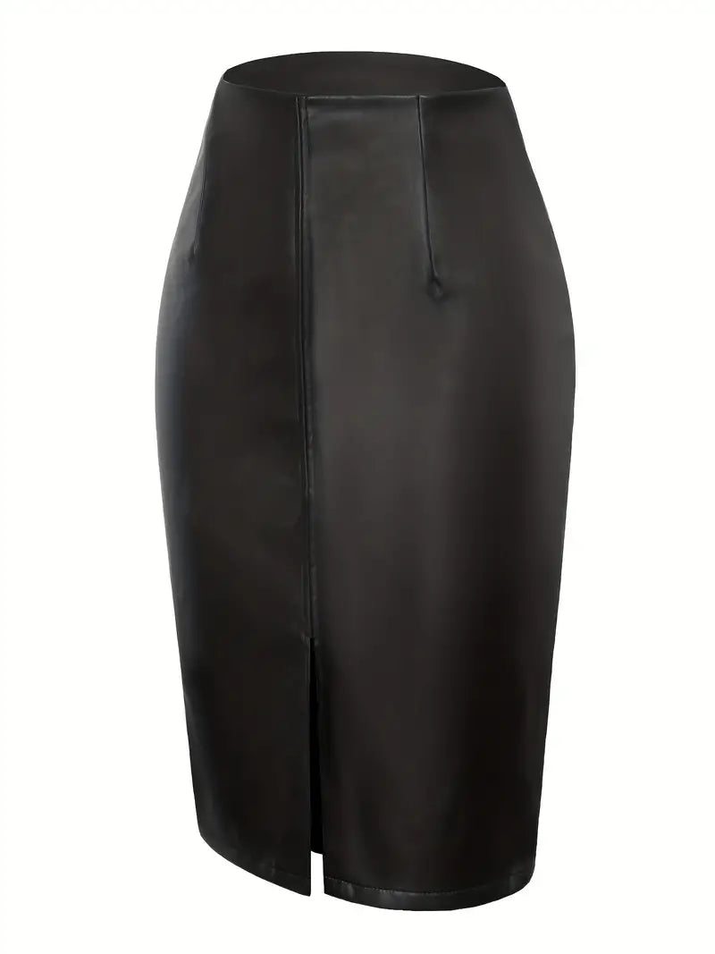 Saias lápis em couro sintético dividida, saia bodycon sexy de cintura alta