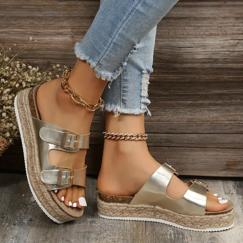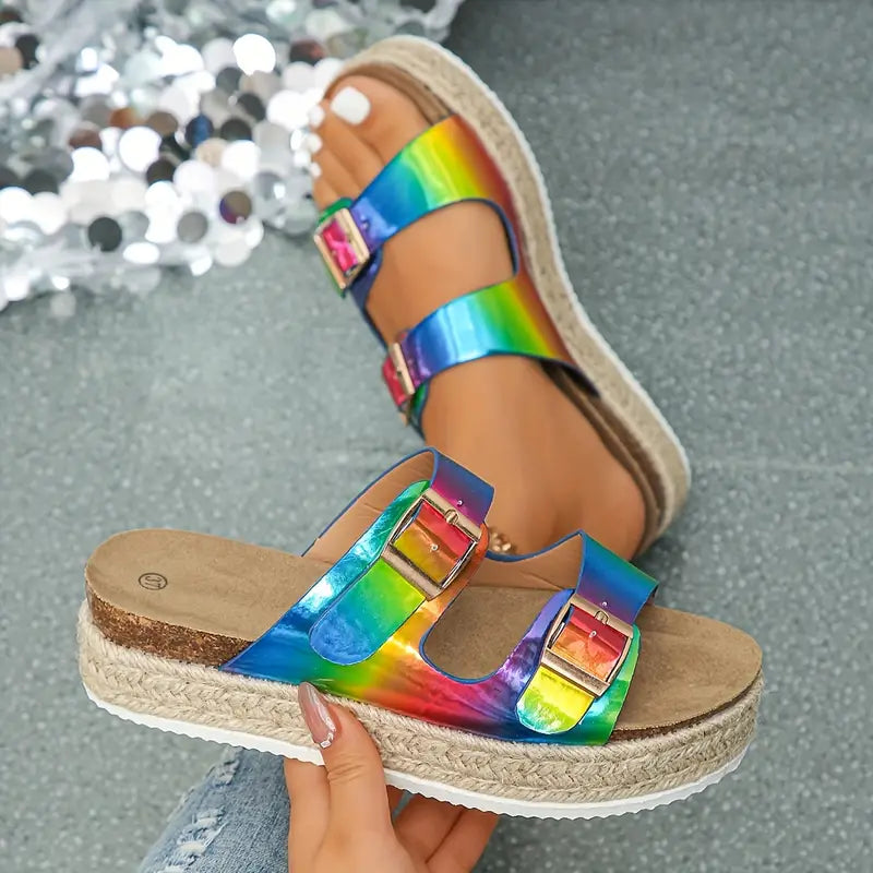 Sandálias de plataforma com fivela dupla de cor sólida vibrante