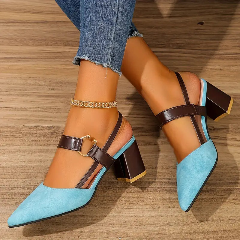 Sandálias femininas de salto alto com bico fino, sapatos de estilingue de cor sólida da moda