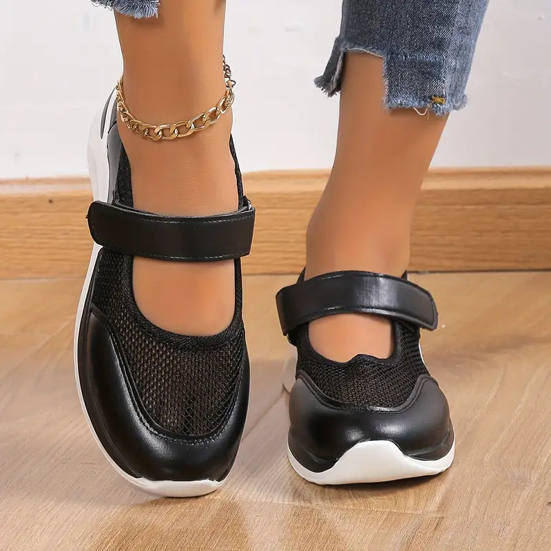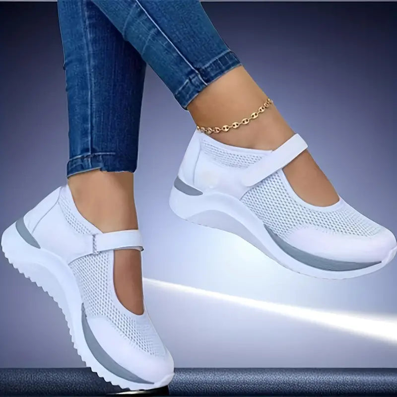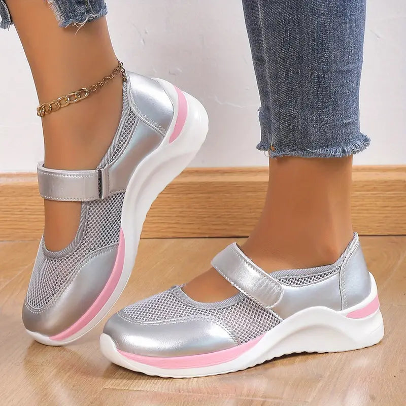 sapatilhas de plataforma de painel de malha, sapatos versáteis de cano baixo redondo, sapatos de verão confortáveis e respiráveis