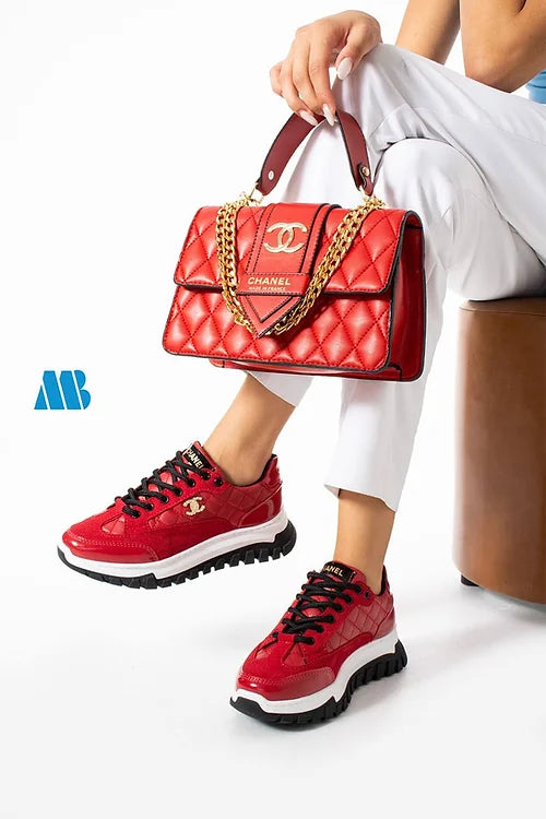 Olá, nosso contacto: 84-7374872; 84 382 205; 87 434 1611; Produto: Sapatilhas e bolsa combinada CHANEL
