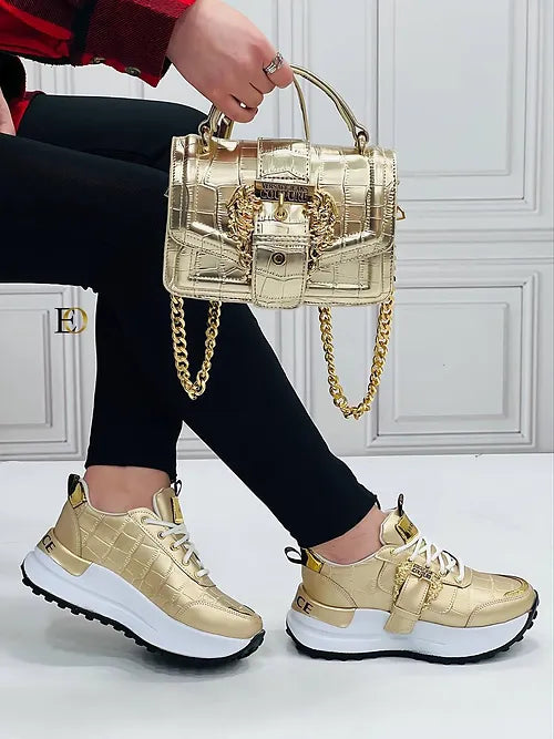 Olá, nosso contacto: 84-7374872; 84 382 205; 87 434 1611; Produto: Sapatilhas e Bolsa Combinada VERSACE