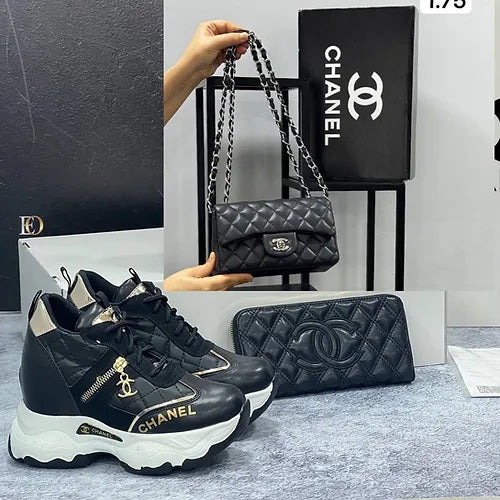 Olá, nosso contacto: 84-7374872; 84 382 205; 87 434 1611; Produto: Sapatilhas e bolsas combinada CHANEL