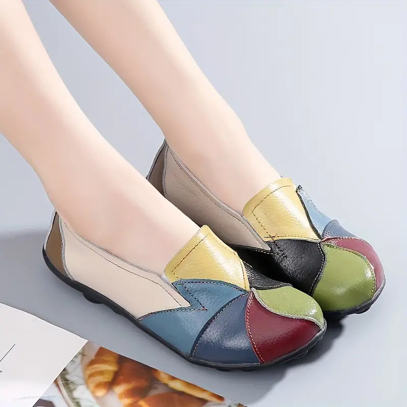 Sapatos baixos colorblock femininos, sapatos de sola macia da moda