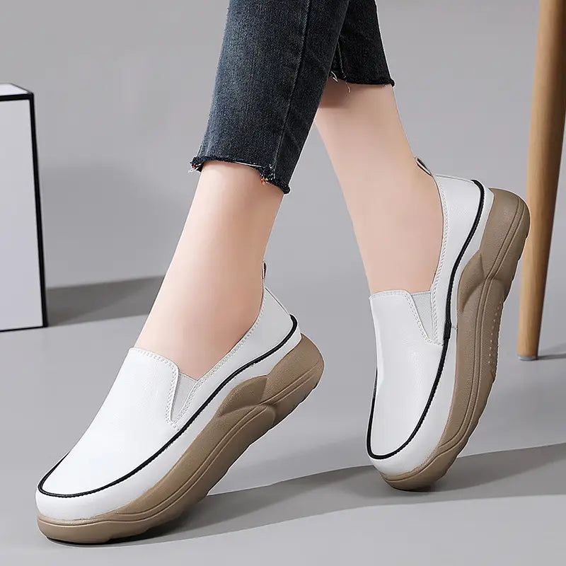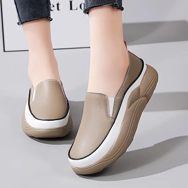 Sapatos com acabamento contrastante, sapatos baixos leves de couro sintético de cor sólida