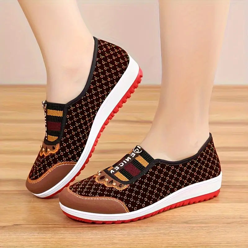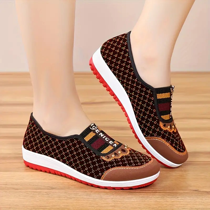 Sapatos planos com letras gráficas, estilo étnico, sola macia