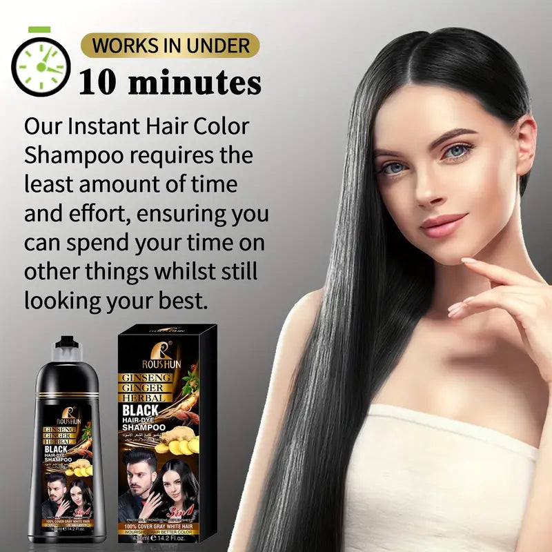 420ml- Shampoo de tintura de cabelo preto para cabelos grisalhos, shampoo de tintura de cabelo instantânea, coloração de cabelo em minutos Shampoo de tintura de cabelo de cor natural e de longa duração para homens e mulheres