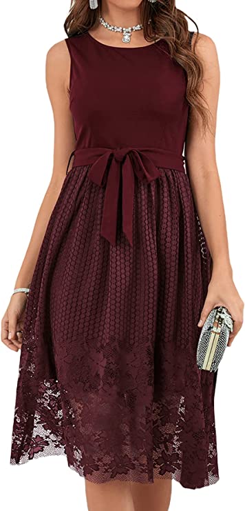 Vestido feminino elegante floral de renda sem mangas com amarração na cintura