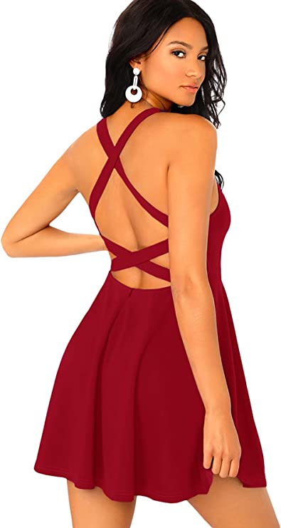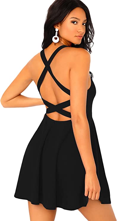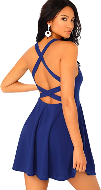 Vestido de festa feminino evasê com decote canoa nas costas sem mangas cruzadas