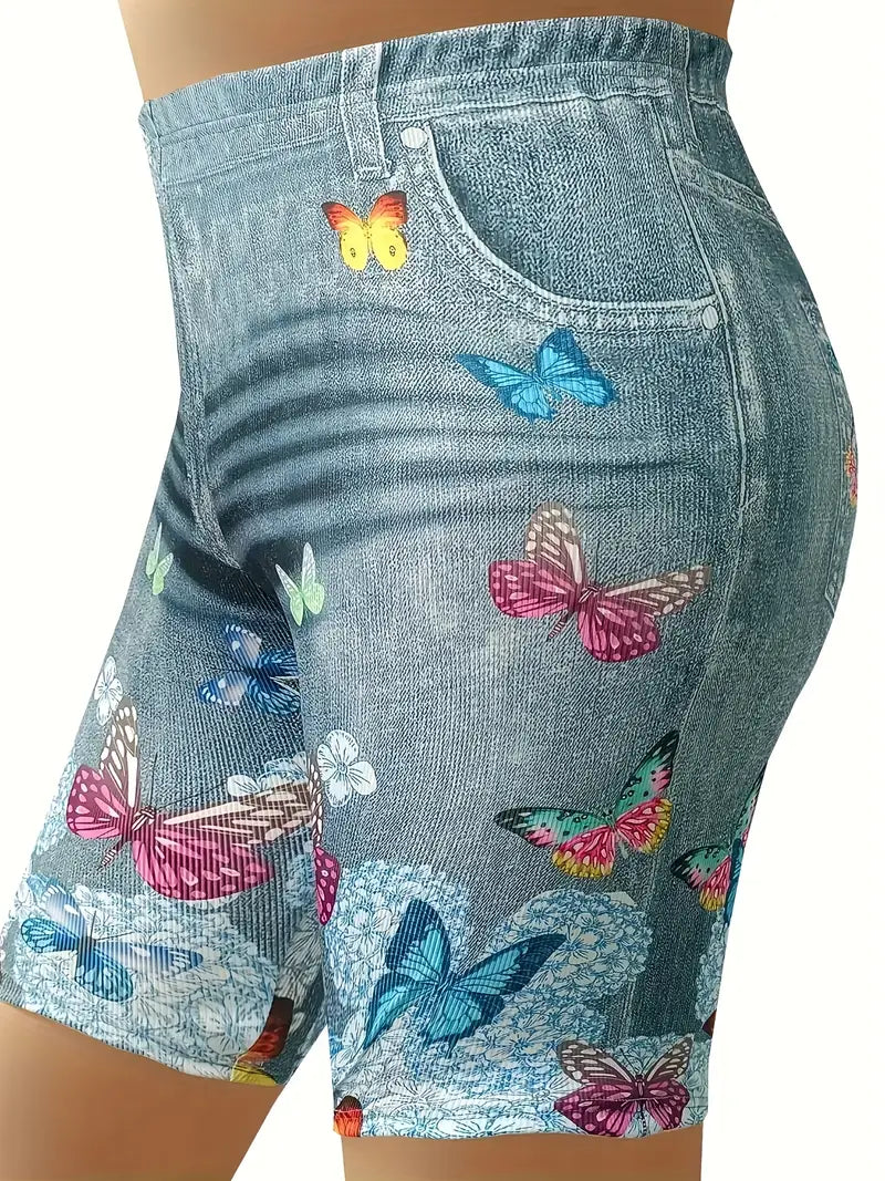 Shorts de cintura alta com estampa de borboleta