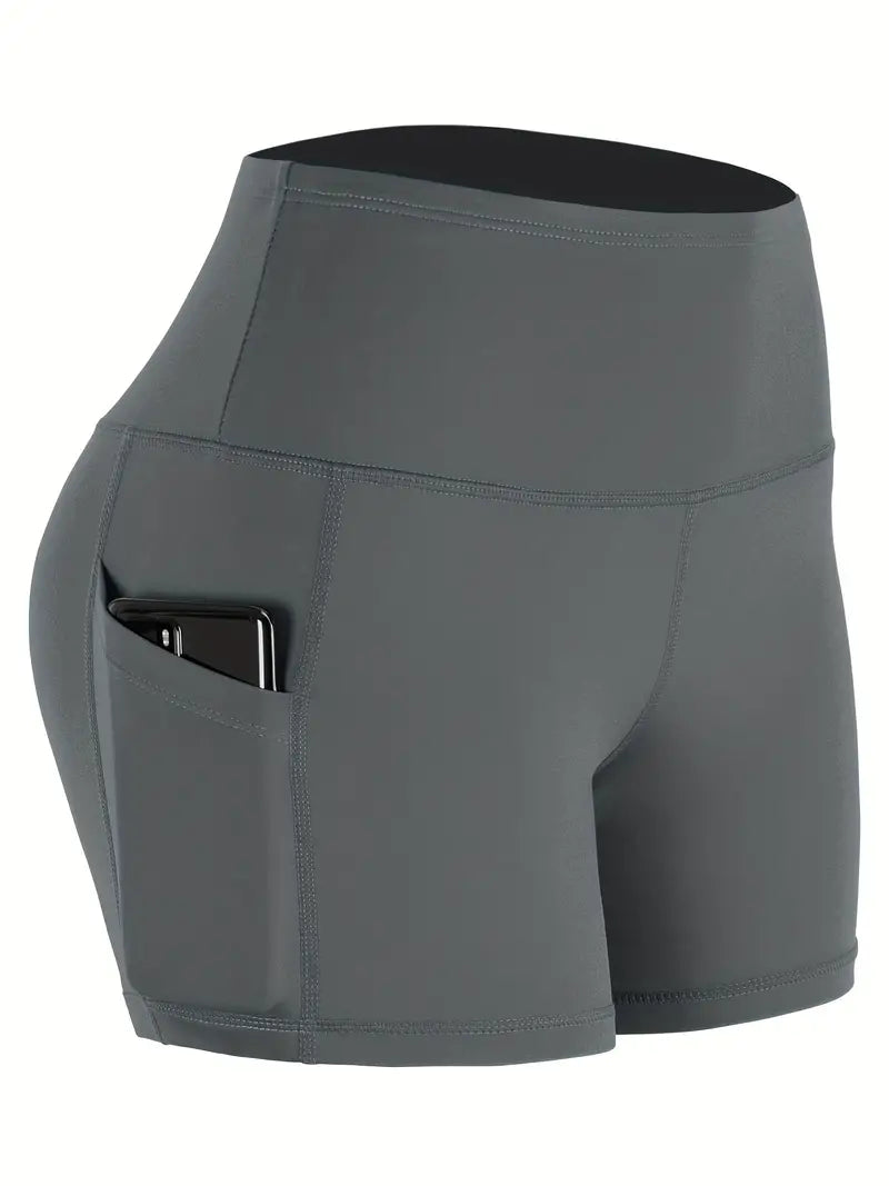 Shorts lisos de cintura alta, esportivos para para treinos de corrida