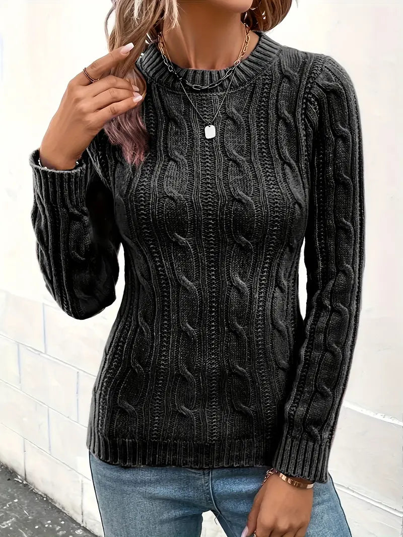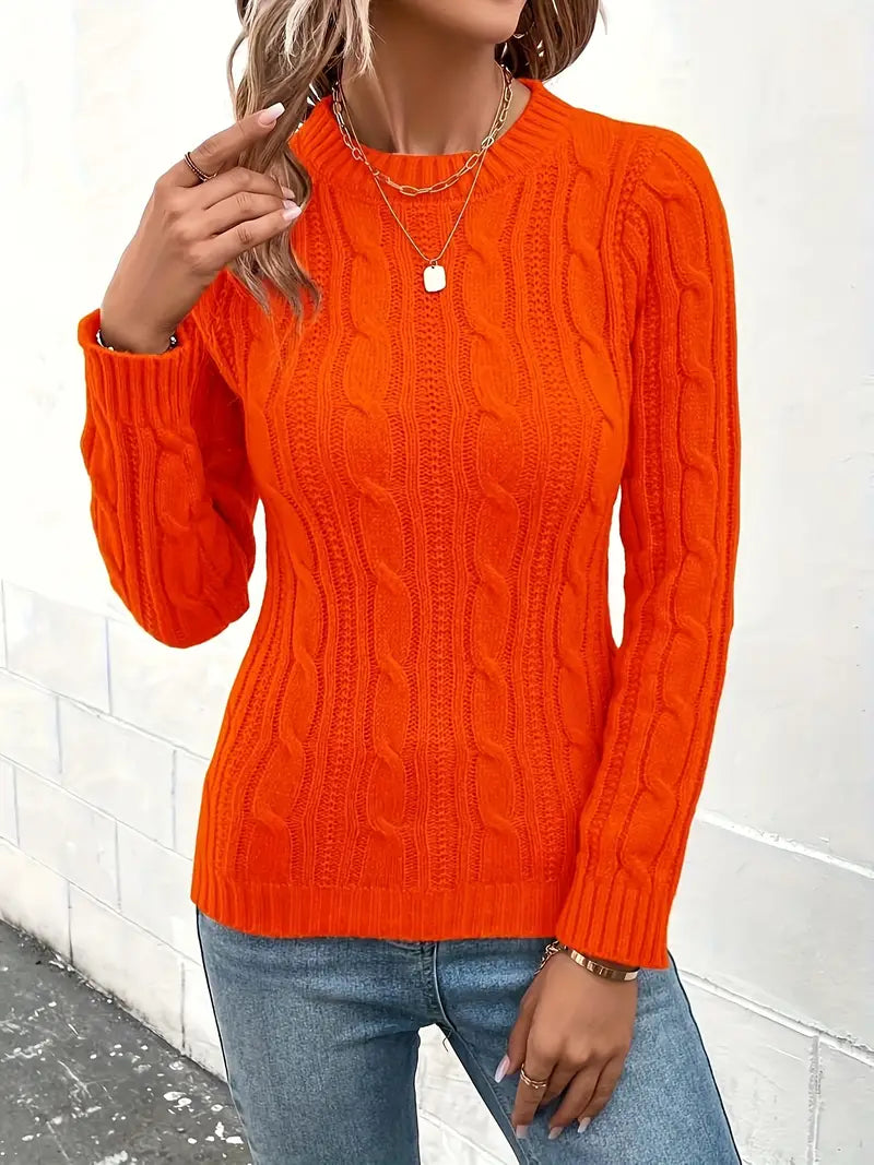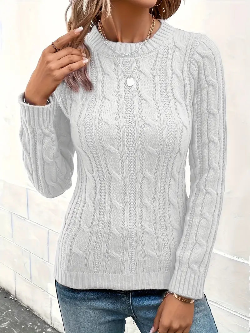 Suéter feminino de malha premium gola redonda macia e elegante de manga comprida slim fit