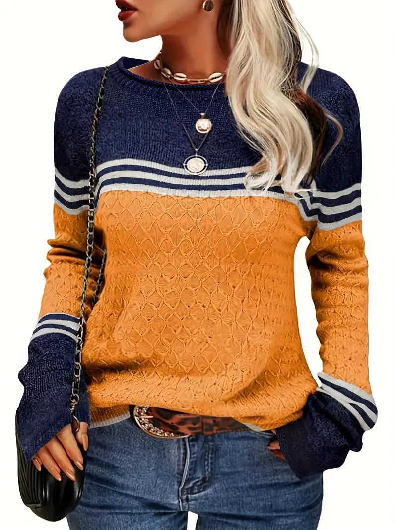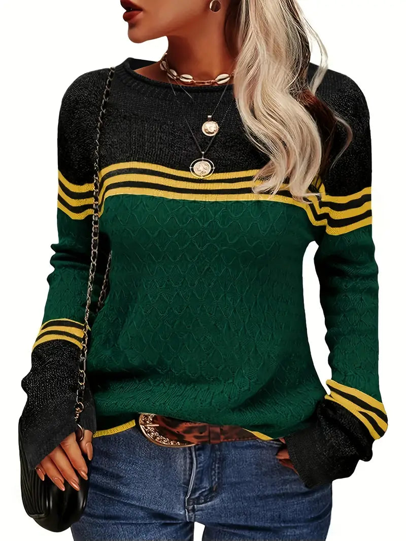 Suéter moderno e chique com listras coloridas confortável com gola redonda para mulheres