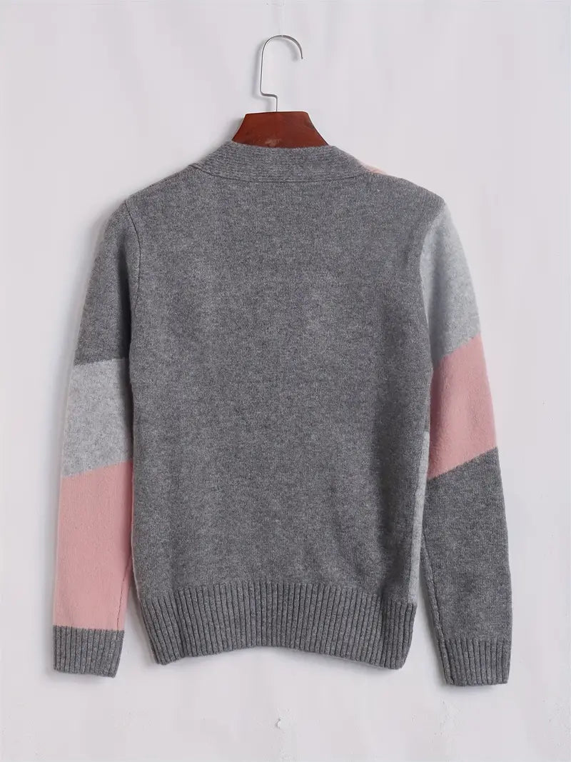 Suéter pulôver colorido, suéter versátil de manga comprida para o inverno
