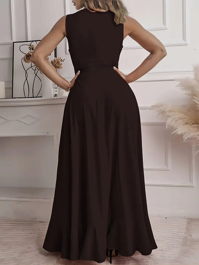 Vestido assimétrico com bainha com babado e decote em V, elegante vestido regata frontal com nó sólido