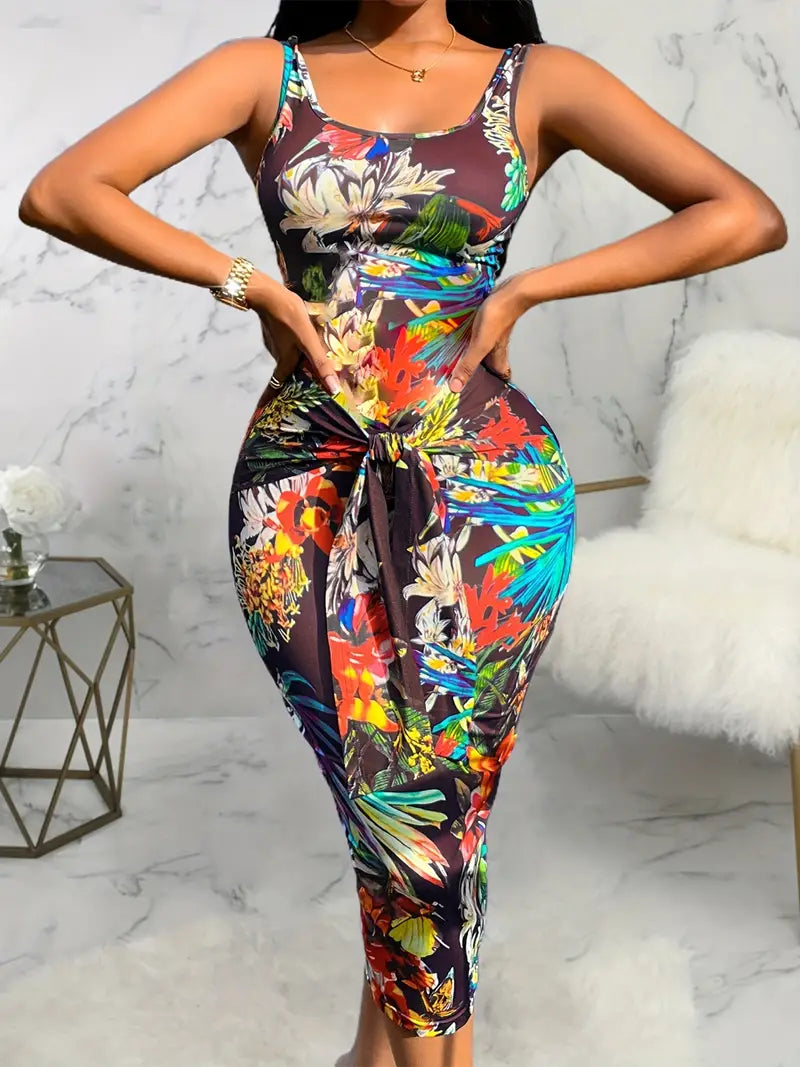 Vestido bodycon com estampa floral na frente
