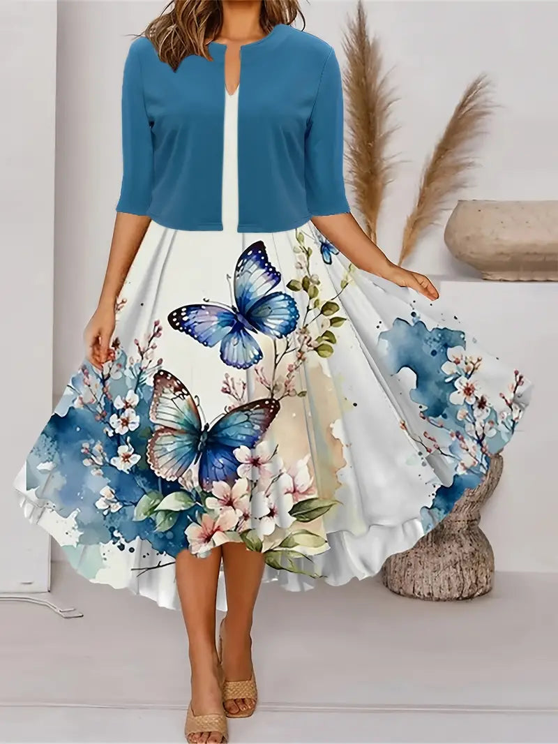 Vestido com estampa de borboleta casual e elegante