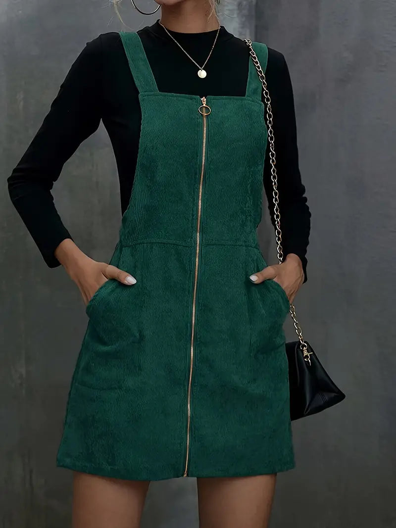 Vestido com zíper e bolso, vestido sólido casual sem mangas