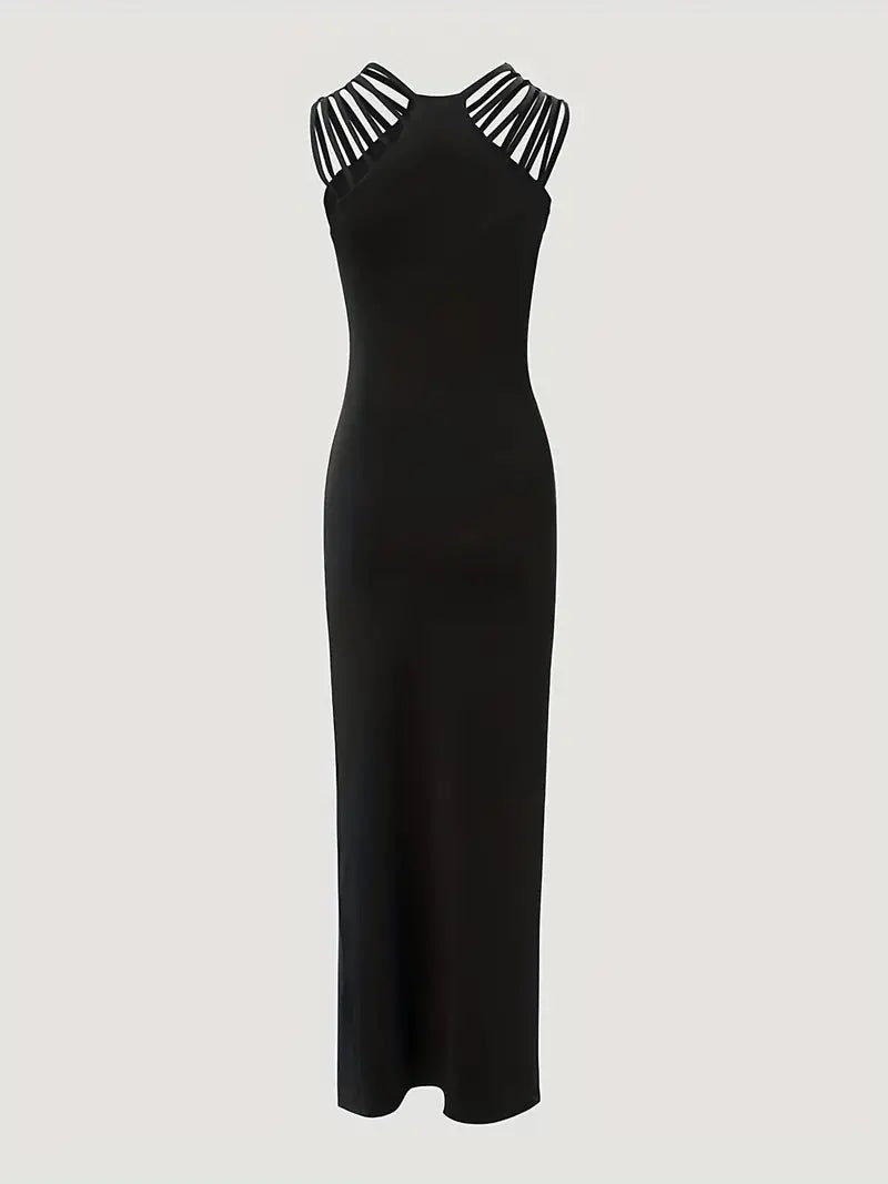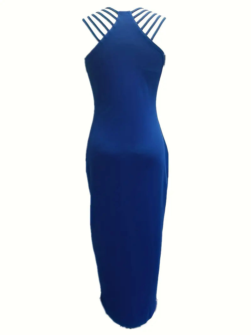 Vestido de strass sólido, elegante vestido de festa maxi sem mangas com coxa dividida