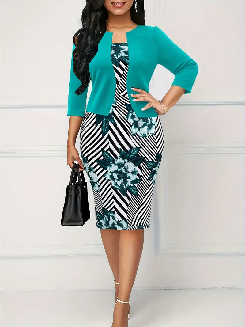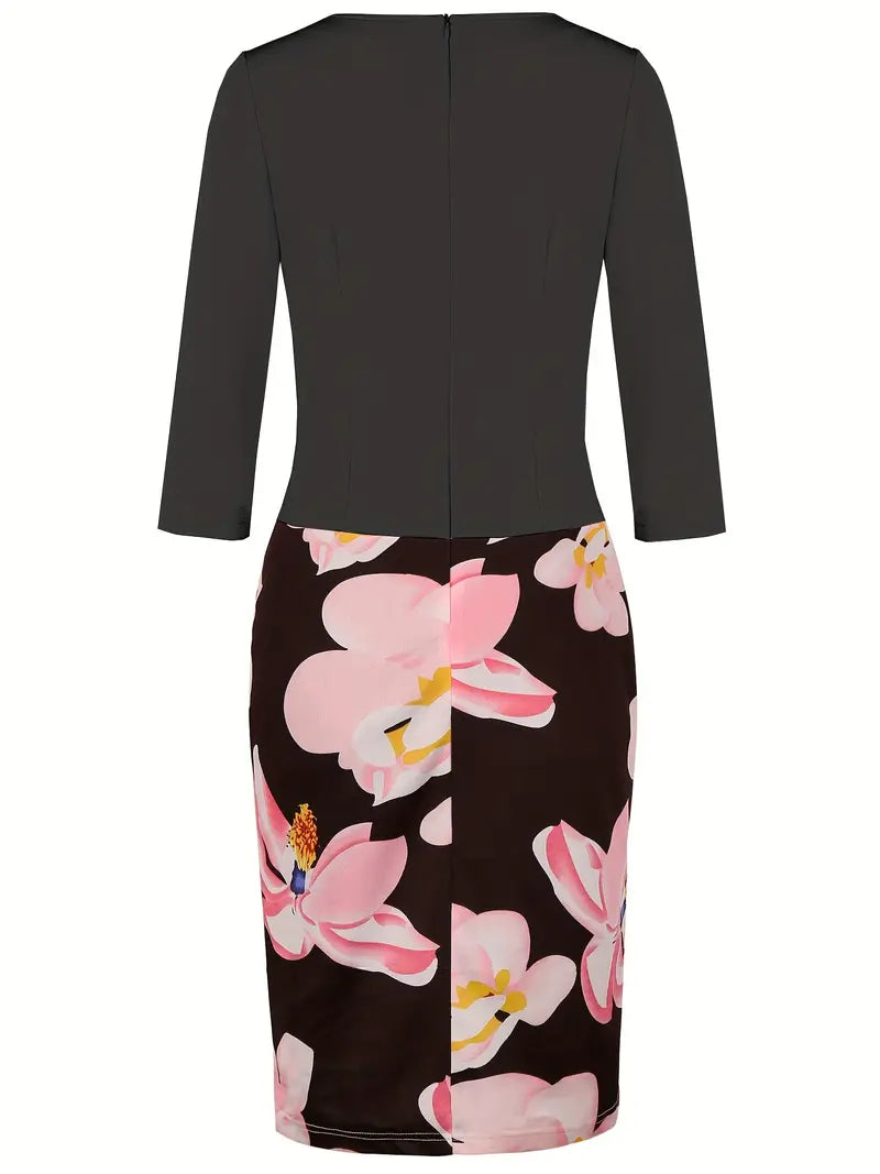 Vestido casual de mulher estilo cocktail retro para trabalho e escritório