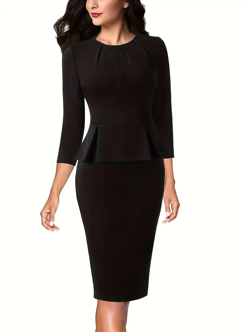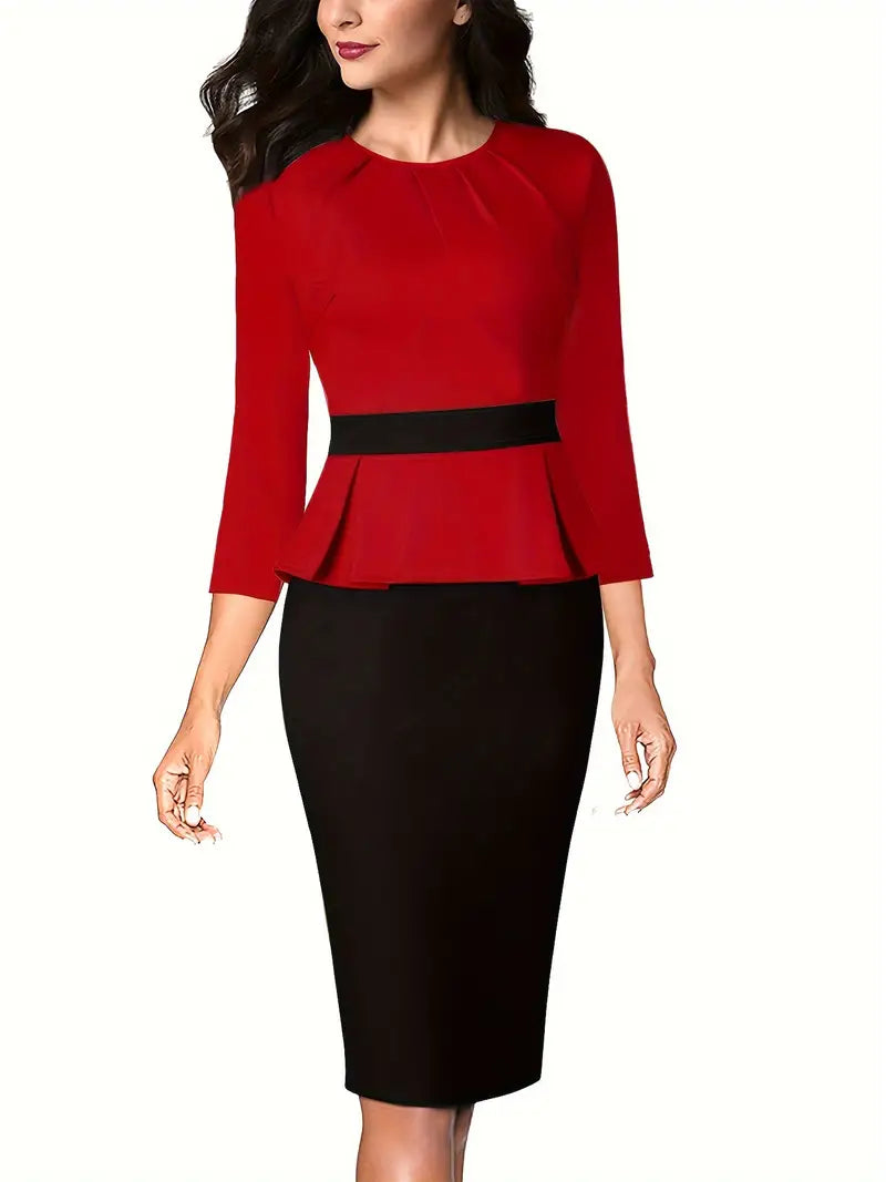 Vestido peplum em bloco colorido, elegante vestido para trabalho