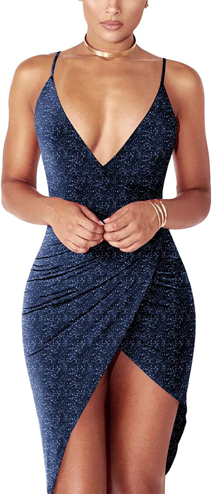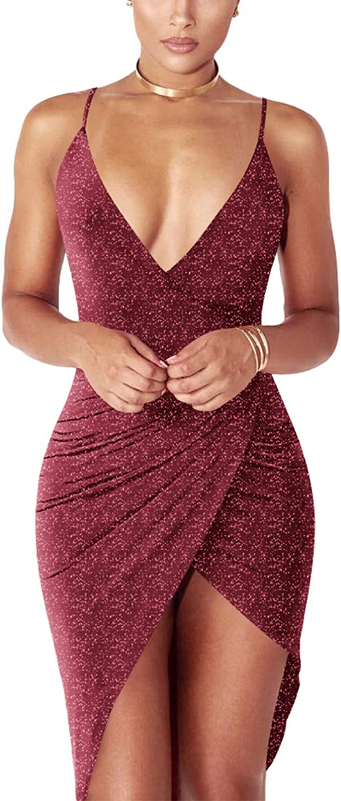 Vestido de cocktail para mulher com lantejoulas e glitter, decote em V,