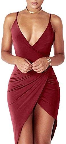 Vestido sexy com decote em V profundo sem mangas alças finas e colado no corpo com fenda frontal