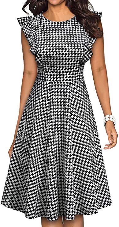 Vestido casual de mulher estilo cocktail retro para trabalho e escritório
